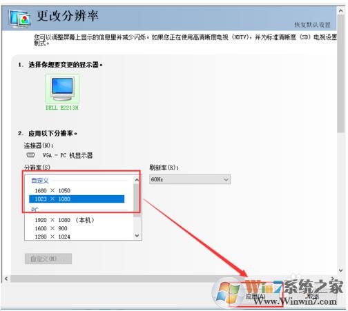 第九步,返回第四步更改分辨率界面-选择的自定义分辨率-点击应用,如下图