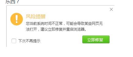 360浏览器风险提醒:您当前系统时间不正常,可能会导致某些网页无法打开