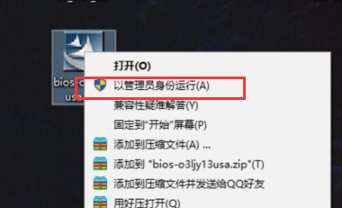 3、这时我们可以看到解压出来的程序,鼠标选择BIOS升级程序,鼠标右键选择“以管理员身份运行”;