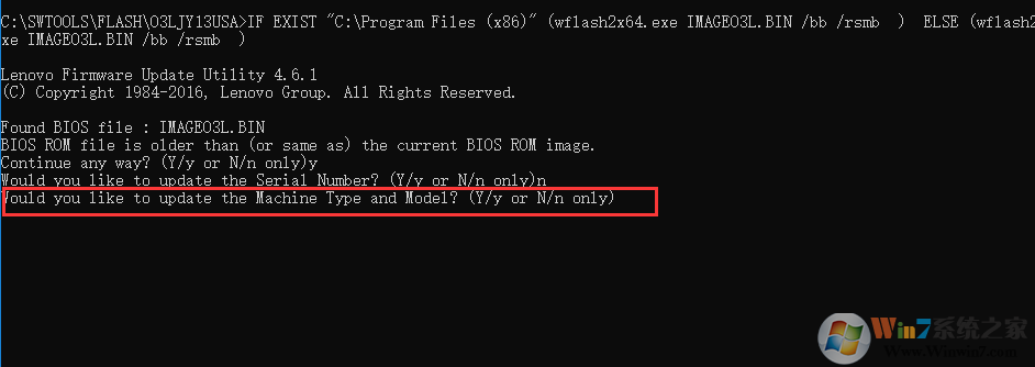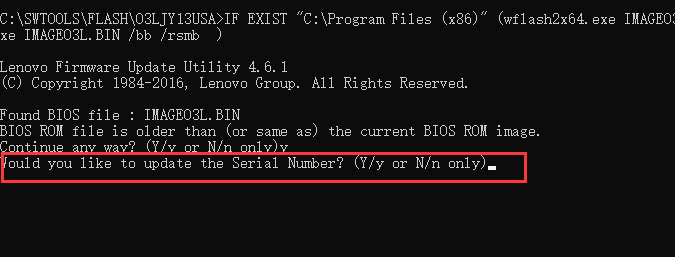 重要提示:更新BIOS中的英文提示一定要看清楚,如果出现更新SN,MTM信息需要刷新 选择N。否则会清空主机编号信息,导致系统下软件无法正确获取。