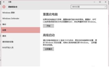 1、开始菜单菜单->设置->更新和安全->恢复。