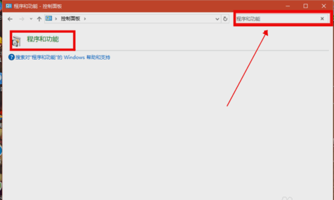 2、然后输入程序与功能,或者直接打开程序与功能。