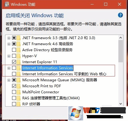 4、然后勾选叫internet information services的两个框,选中它们点确定,如下图