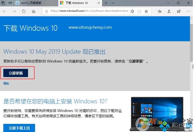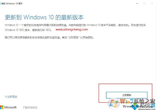 5、这时候会显示当前win10版本,并提示最新版是1903,然后点击立即更新,后面都是自动执行过程,需要耐心等待。