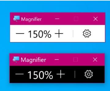 放大镜UI现在适用于黑暗主题和文本大小选项。下图显示了两个放大镜窗口。最上面的是Light主题和默认文本大小;底部是黑暗主题,文字缩放为125%。