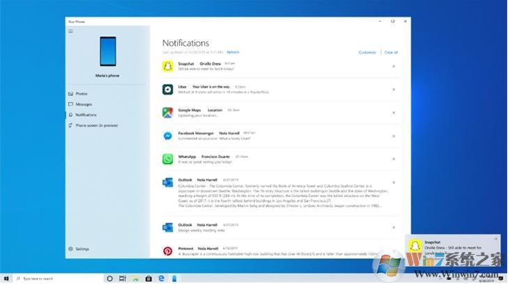 在2019 Windows 10更新五月版或更新版本的预览测试中推出通知与手机屏幕的集成功能。如果设置手机屏幕,你的通知将在手机屏幕中打开,允许你与键盘、鼠标进行交互。如果不支持或设置手机屏幕,则点击通知会转到你的通知流。