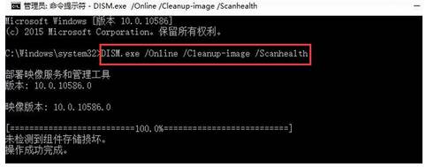 这条命令和意思是和微软远程服务器上的Win10系统镜像进行比对,看看有没有组件储存损坏,如果有再用下面这个命令修复。(如果未检测到,那么下面这个修复命令就不需要了)