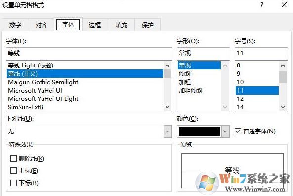 之后, 切换到 “字体” 选项卡,选择 “字体”、”字体样式”、”字体大小”,然后点击 “确定” 按钮,如图所示: