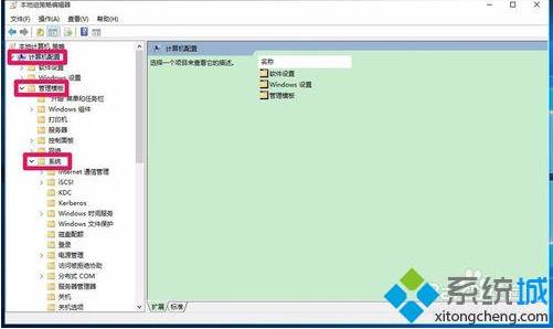 2、在打开的本地组策略编辑器窗口,展开:计算机配置-管理模板-系统。