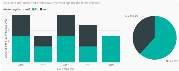 微软安全响应中心的工程师借助遥测数据把自Windows 10发布以来所有利用零日漏洞的攻击案例归类统计。