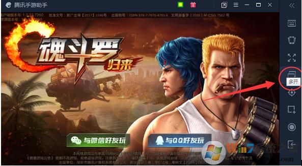 2、运行游戏后会弹出一个腾讯手游助手游戏窗口,在这个窗口右侧的功能列表中就可以看到“多开”的功能了。