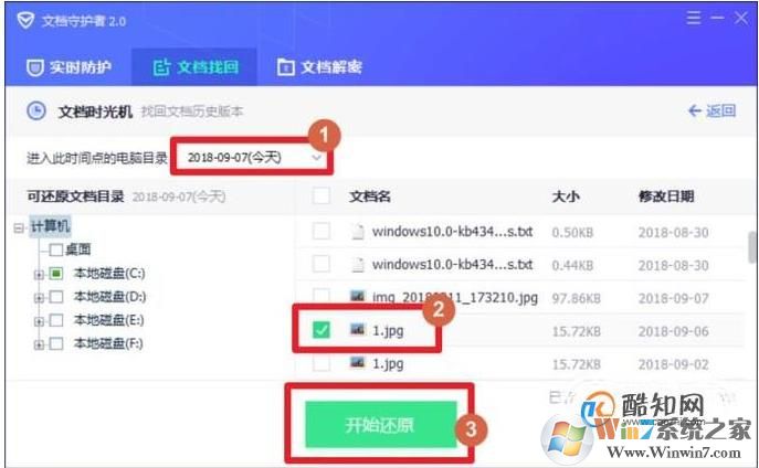 3、首先选择“删除日期”然后勾选要恢复的文件,最后单击“开始还原”即可。