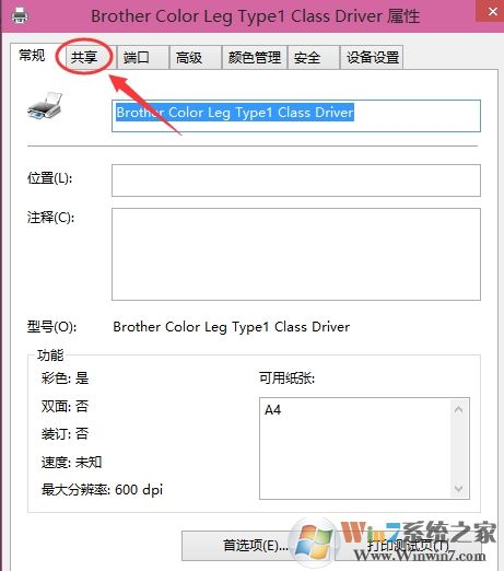 4、点击进入对应的打印机属性对话框,点击共享选项卡;
