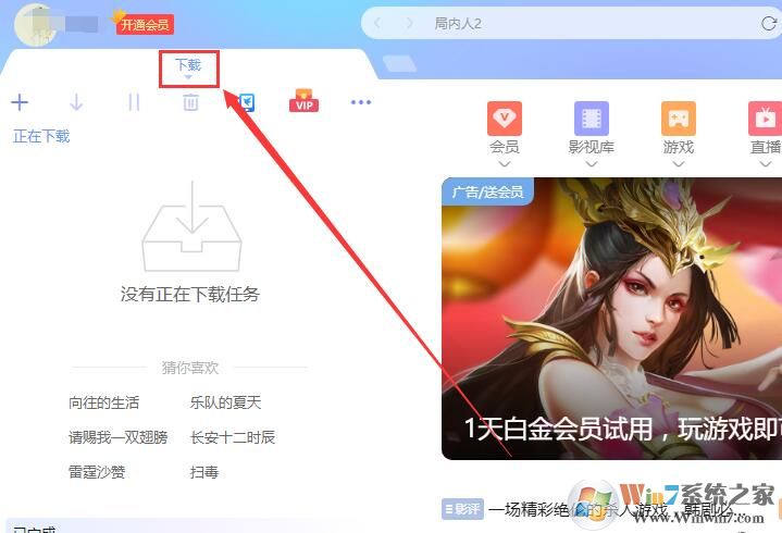 1、首先你需要的是迅雷新版本,老版本是没有的,点击上方的【下载】,如图。