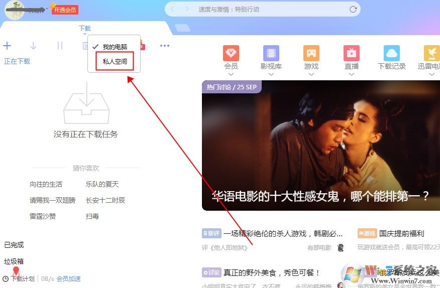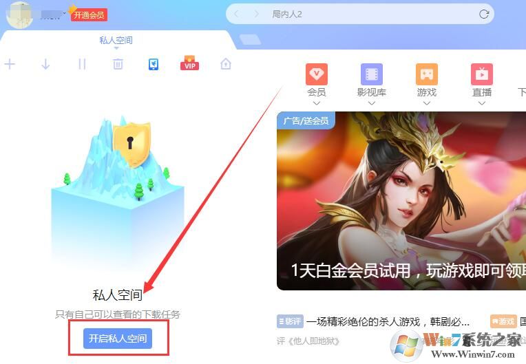 迅雷新加入的私人空间功能,可以让用户把私密的一些下载存放到私人空间中,并用密码保护,可以有效的防止隐私泄漏,那么很多用户不知道迅雷私人空间在哪打开,怎么打开私人空间,下面小编就和大家分享下具体方法