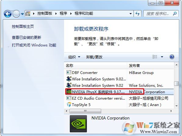 方法1、到控制程序卸载中找到所有有关NVIDIA的项目都卸载掉。