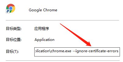 1、找到Google Chrome的图标,或是360浏览器都可以,右键属性,在目标处添加 --ignore-certificate-errors