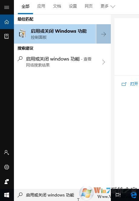 1、首先在搜索框搜索: 启用或关闭 Windows 功能,打开(也可以先打开控制面板—程序—启用或关闭windows功能)