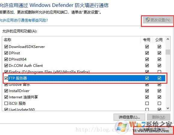 7、点击更改设置,勾选FTP服务器&专用&公用