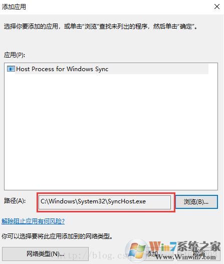 8、点击允许其它应用,选择C:\Windows\System32\svchost.exe(下面图片后截的,选错了)然后添加,最后确定。