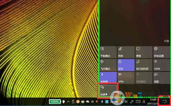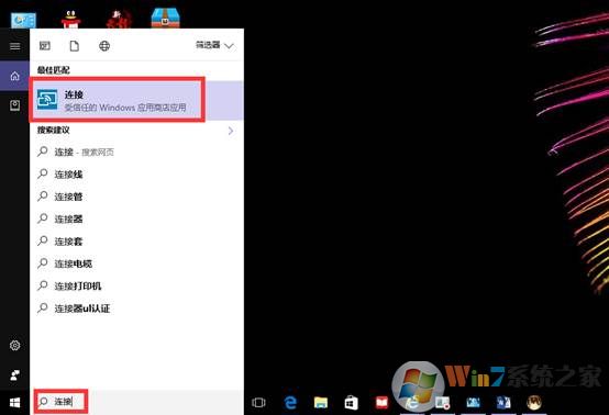 步骤二:接受投屏端,打开搜索栏(小娜)搜索-连接-打开;