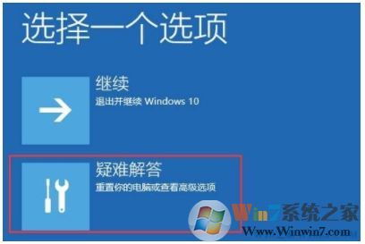 4、重启之后出现选择一个选项。点击疑难解答进入;