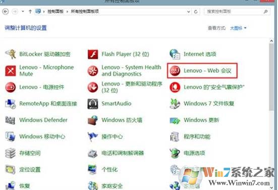 打开控制面板,右上角查看方式改成大图标,打开LenovoWeb会议;