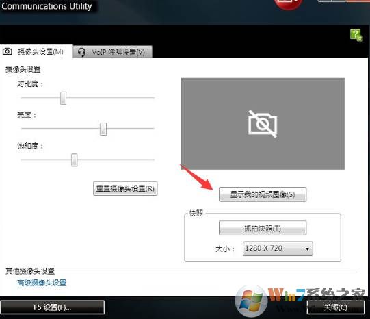 如果不显示摄像头画面,请点击“显示我的视频图像”选项,点击以后即可正常使用摄像头。