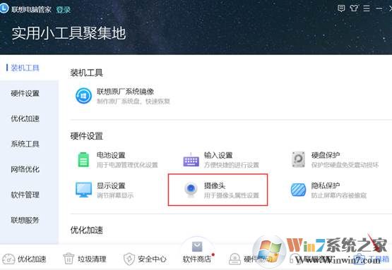 若电脑出厂带联想电脑管家,打开找到工具箱,检查是否有摄像头设置选项;