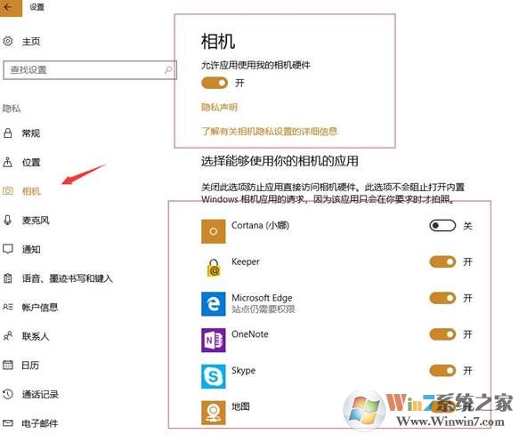 Win10系统,设置—隐私—相机—允许所有应用使用相机,全部打开。