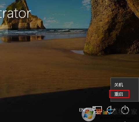 1、首先在登录界面是有电源按钮的,我们按住键盘上的SHIFT键然后点击屏幕右下方【电源】-【重启】按钮