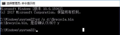 3、这时会提示是否确认删除回收站的提示,输入字母y,然后按下回车键即可。