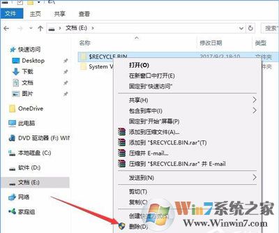 3、此时就会显示隐藏的Recycled文件夹,选中后安装shift+delete 将其删除即可。