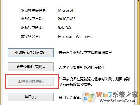 第三步、打开设备属性后,切换到“驱动程序”标签页,然后点击“滚回驱动程序”按钮;(如果没有更新过驱动,那么这个按钮将是灰色的无法点击);