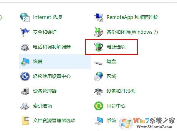 2、点击小图标查看,然后点击“电源选项”