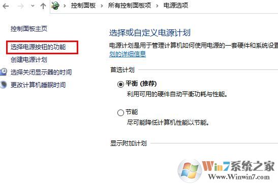 3、点击“选择选择电源按钮的功能”这个选项