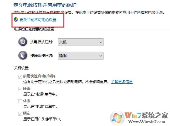 4、点击“更改当前不可用的设置”如下图示