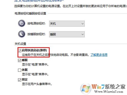 5、选择“关机设置”将“启动快速启动”的勾取消掉