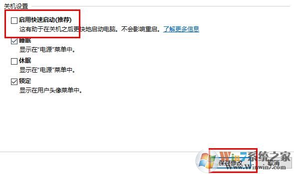 6、再将“启动快速启动”的√勾上然后点击“保存修改”就可以了。、