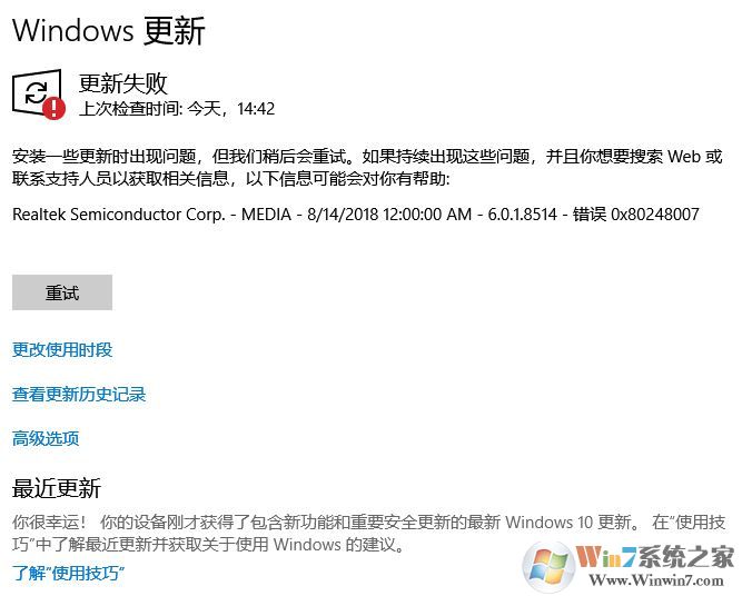 以上就是Winwin7分享的关于Win10系统更新产修复方法了,如果有更好的方法欢迎大家提供。