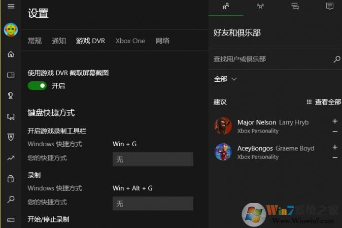 1、启动Xbox应用,在“设置”窗口选择“游戏DVR”选项卡,将“使用游戏DVR截图屏幕截图”开关置于关闭的位置,然后再重新开启。