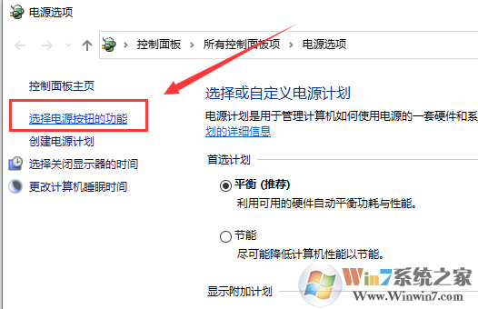 第二步:在打开的电源选项窗口中,点击左侧的选择电源按钮的功能