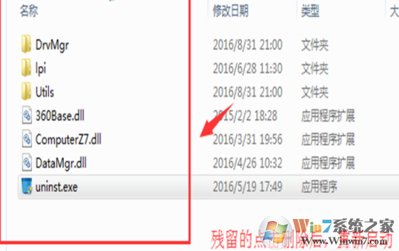7、之后,最后一步是清除残留。在卸载程序的界面中,其余的都是无用的文件夹。右键单击并删除。