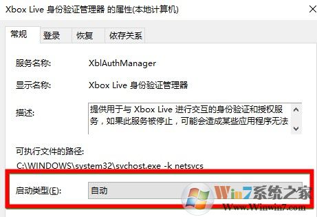 5、在xbox live身份验证管理器服务——右击选择属性——下拉启动类型选择自动——点击确定即可。