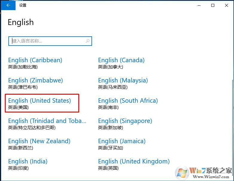 4、选择“英语”---打开,先进入English 然后选择“English(美国)”---添加,