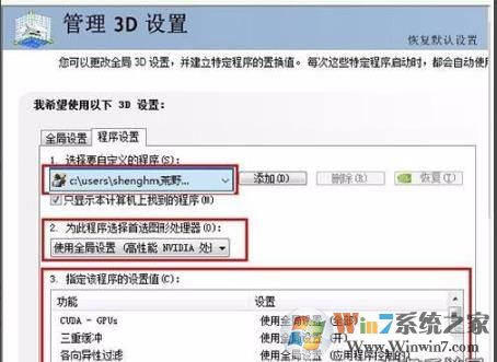3、在程序设置中添加荒野行动程序,再选择“高性能NVIDIA处理器”即可。