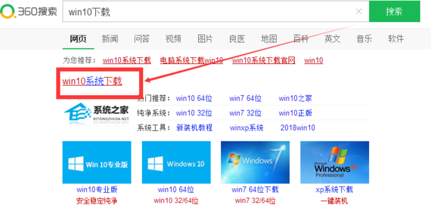 1、打开浏览器,点击搜索WIN10。或是直接下载小编提供的Win10系统:【Win10系统纯净版】WIN10 64位专业版(永久激活)极致纯净版