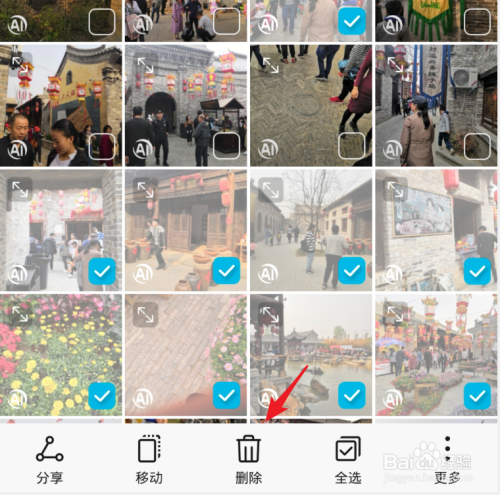 5、切换到云照片界面后,长按云照片,然后勾选需要删除的照片,点击底部的删除;