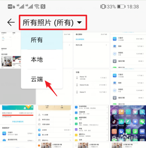 4、在所有照片中点击顶部的所有,选择下方的云端的选项进行切换;