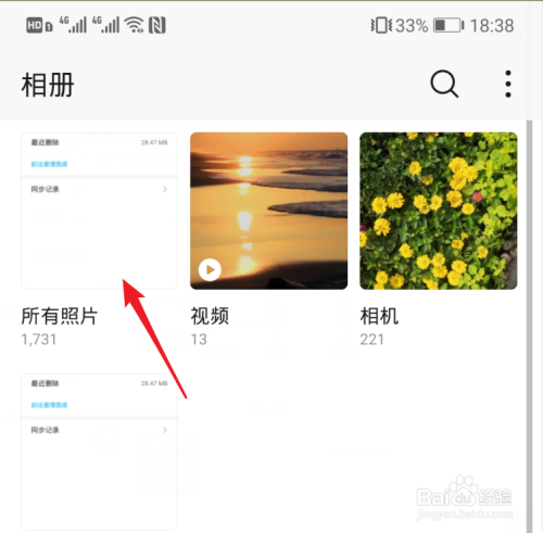 3、跳转到手机相册后,点击所有照片的选项进入;